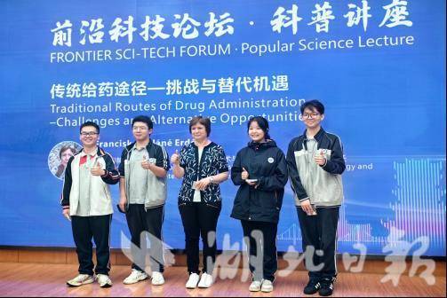 科普才智,西班代言大家Alejandro Cifuentes、匈牙利大家Franciska Vidáné Erdő区别围绕“严肃的科学与敬爱敬爱的科学家”“传统给药路线—挑战与替代机遇”主题在华中科技大学附中为学生们孝顺了两堂纯竟然科普公开课。