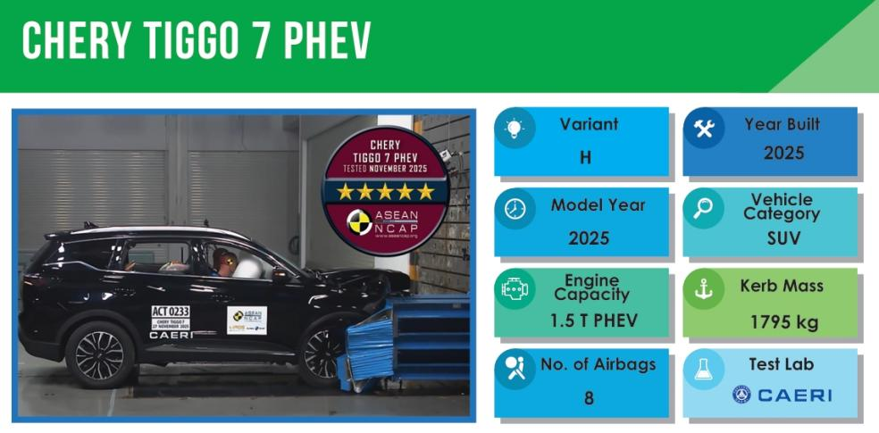 图为瑞虎7 PHEV赢得东盟五星安全认证(ASEAN NCAP)