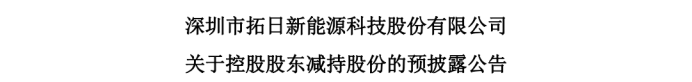 2月25日晚,深圳市拓日新动力科技股份有限公司(下称“拓日新能”)发布对于控股鞭策减抓股份的预露出公告。