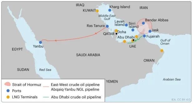 固然,管谈绕行亦然一项备选决策,通过配合沙特、阿联酋两国,全力启用沙特东西向原油管谈和阿联酋阿布扎比原油管谈,以管谈输送分流正本依靠海峡航运的原油运力。